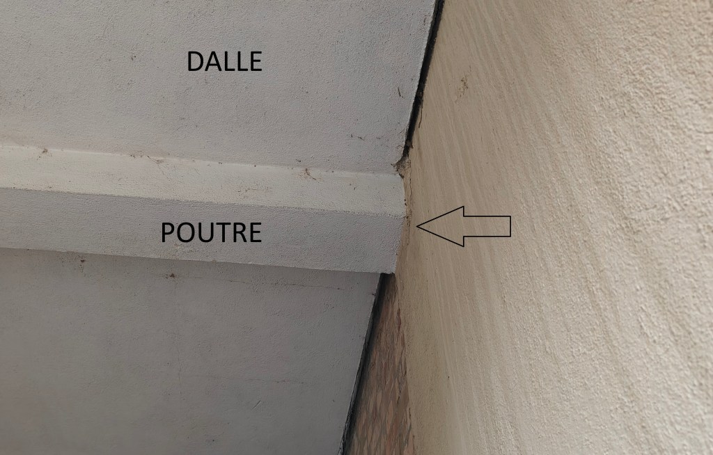 Le joint de dilatation nécessaire à la séparation des deux ouvrages a été réalisé sur la dalle, mais est absent au niveau des poutres comme on le constate sur la photo ci-dessous.