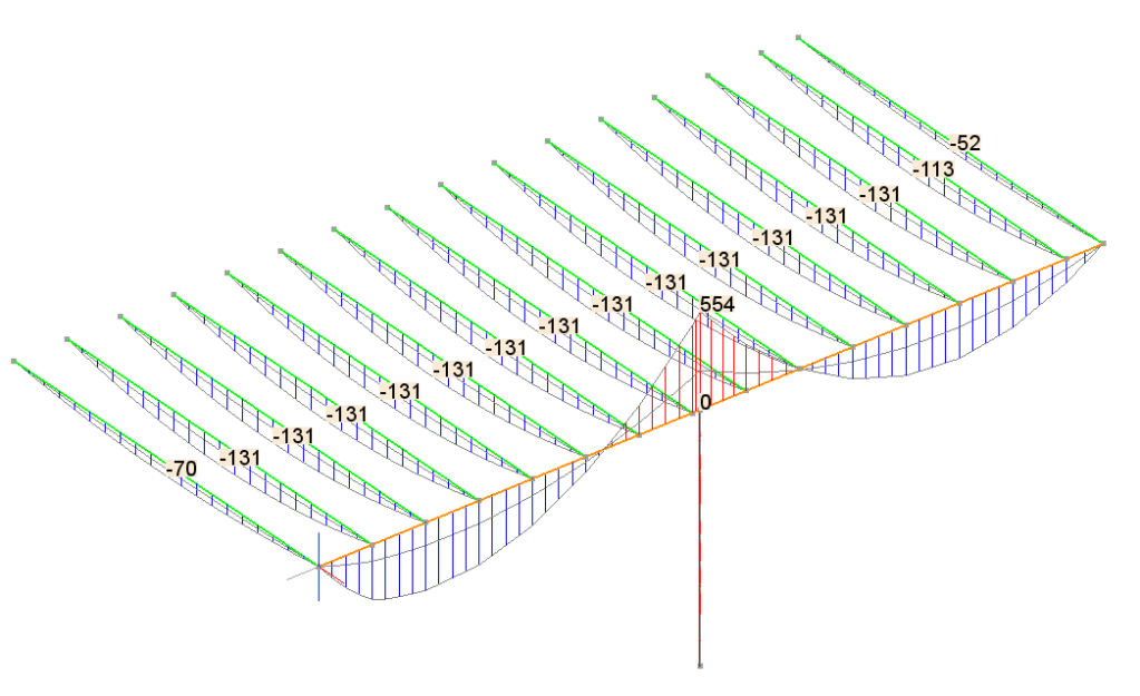 Nous avons ensuite modélisé les structures sur un logiciel éléments finis afin de vérifier la capacité résistante des poutres avec et sans les cloisonnements brique. Des renforcements ont ensuite été proposés au client afin de répondre aux exigences règlementaires en termes de résistance et de déformations.